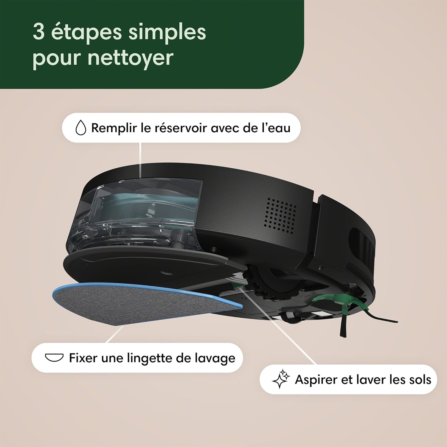 iRobot Roomba Combo Essential (Y0110) - Robot Aspirateur et Laveur Connecté - Efficace et Puissant - Système de Nettoyage en 4 étapes -3 Niveaux d'aspiration - Programmable Via Application ou Voix