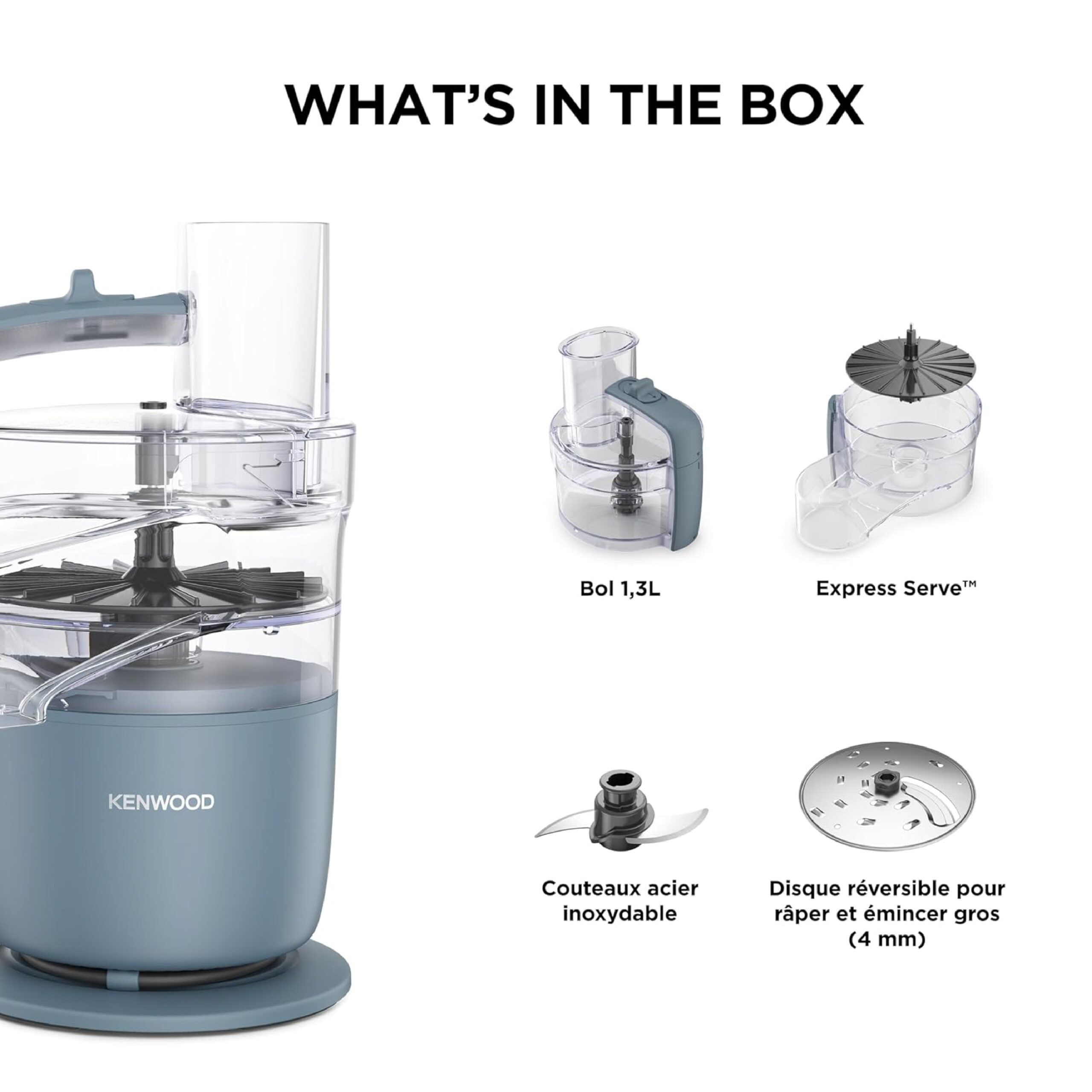 | Kenwood MultiPro Go FDP22.130GY, Processeur Alimentaire Compact de Cuisine de 30cm de Haut, pour Couper, Râper, Mixer et Pétrir la Pâte, avec Express-Serve dans la Poêle, Récipient 1,3 l, 650W, Bleu | 1 23900 د.ج |