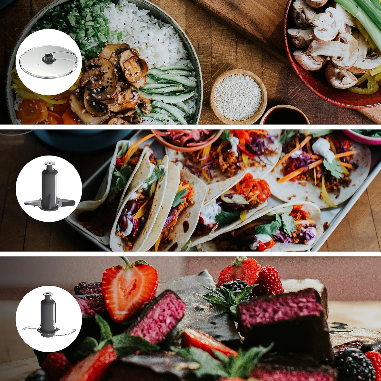 Kenwood MultiPro Go FDP22.130GY, Processeur Alimentaire Compact de Cuisine de 30cm de Haut, pour Couper, Râper, Mixer et Pétrir la Pâte, avec Express-Serve dans la Poêle, Récipient 1,3 l, 650W, Bleu