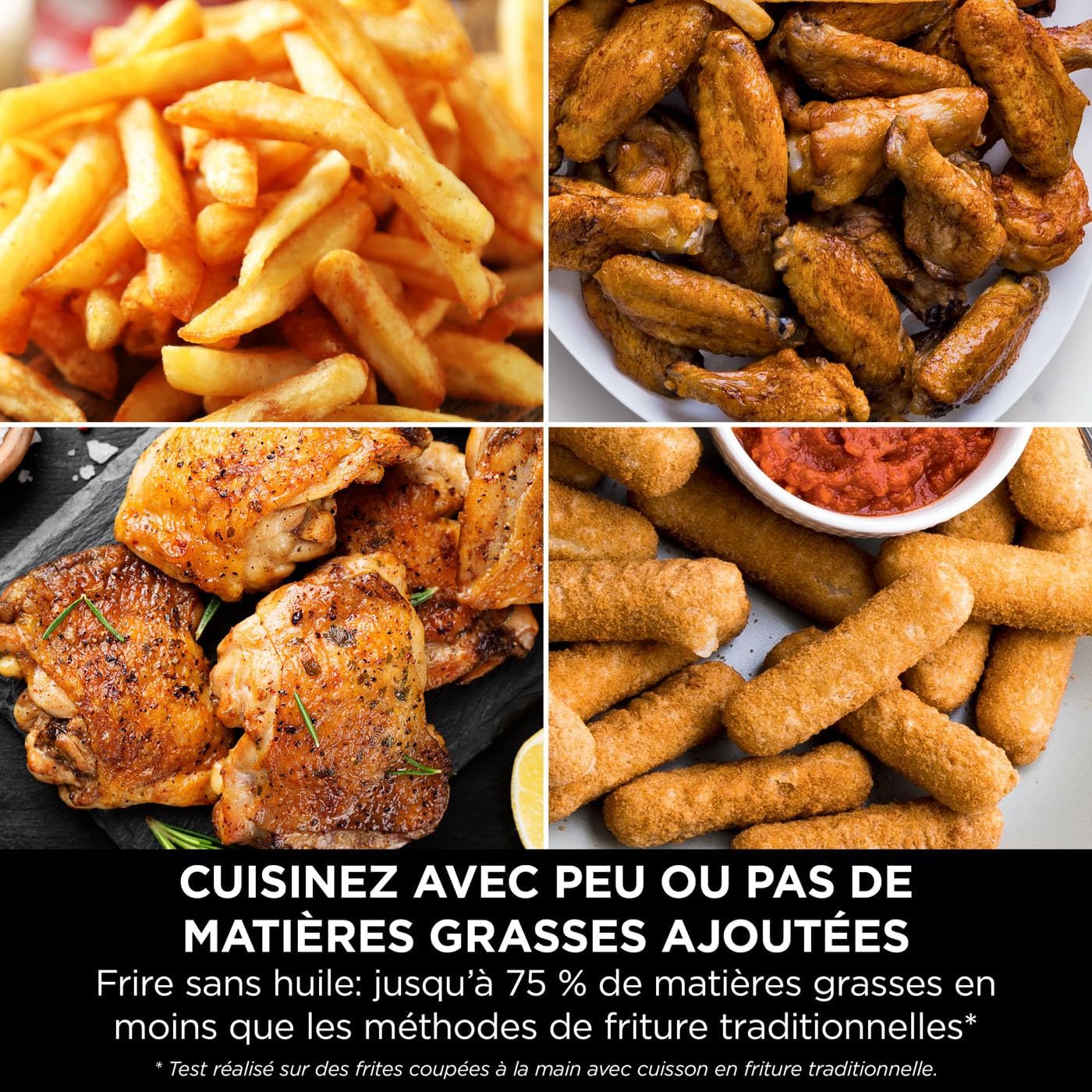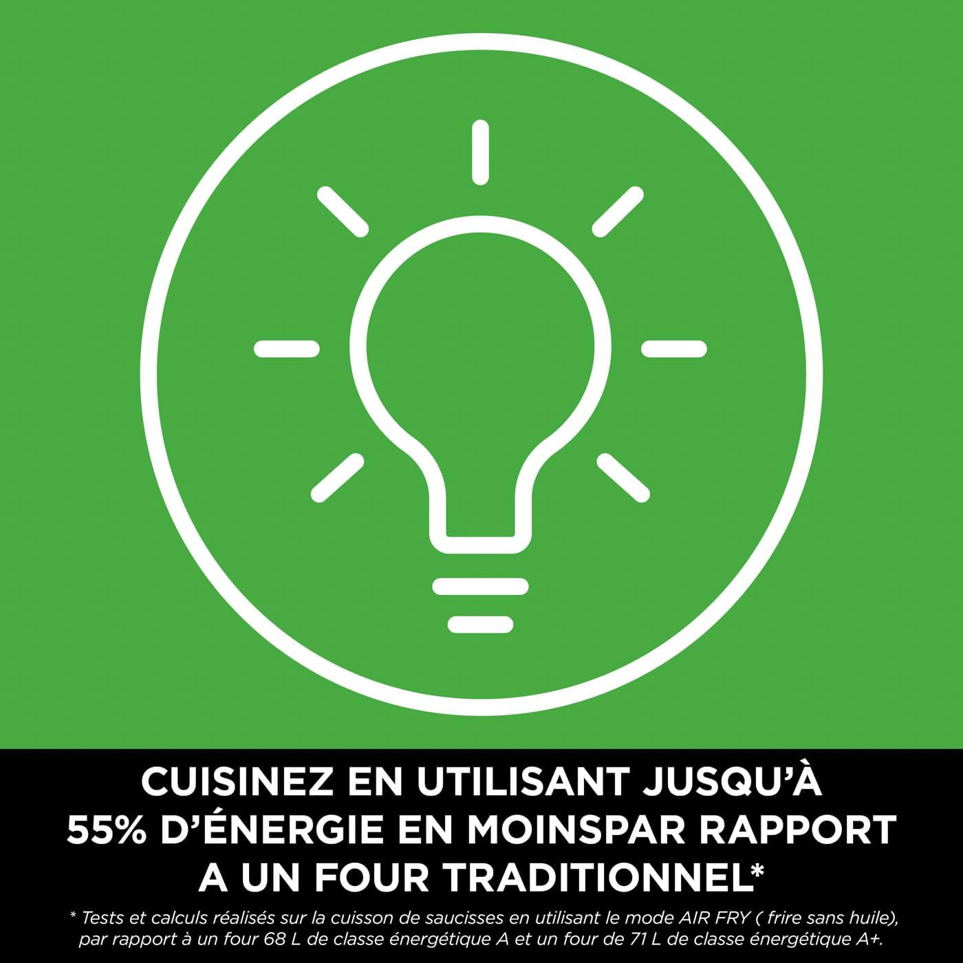 6 fonctions de cuisson, Frire sans huile, Max Crisp, Rôtir, Cuire au four, Réchauffer et Déshydrater, 2 zones de cuisson indépendantes, 2 grilles, Pièces compatibles avec le lave-vaisselle.