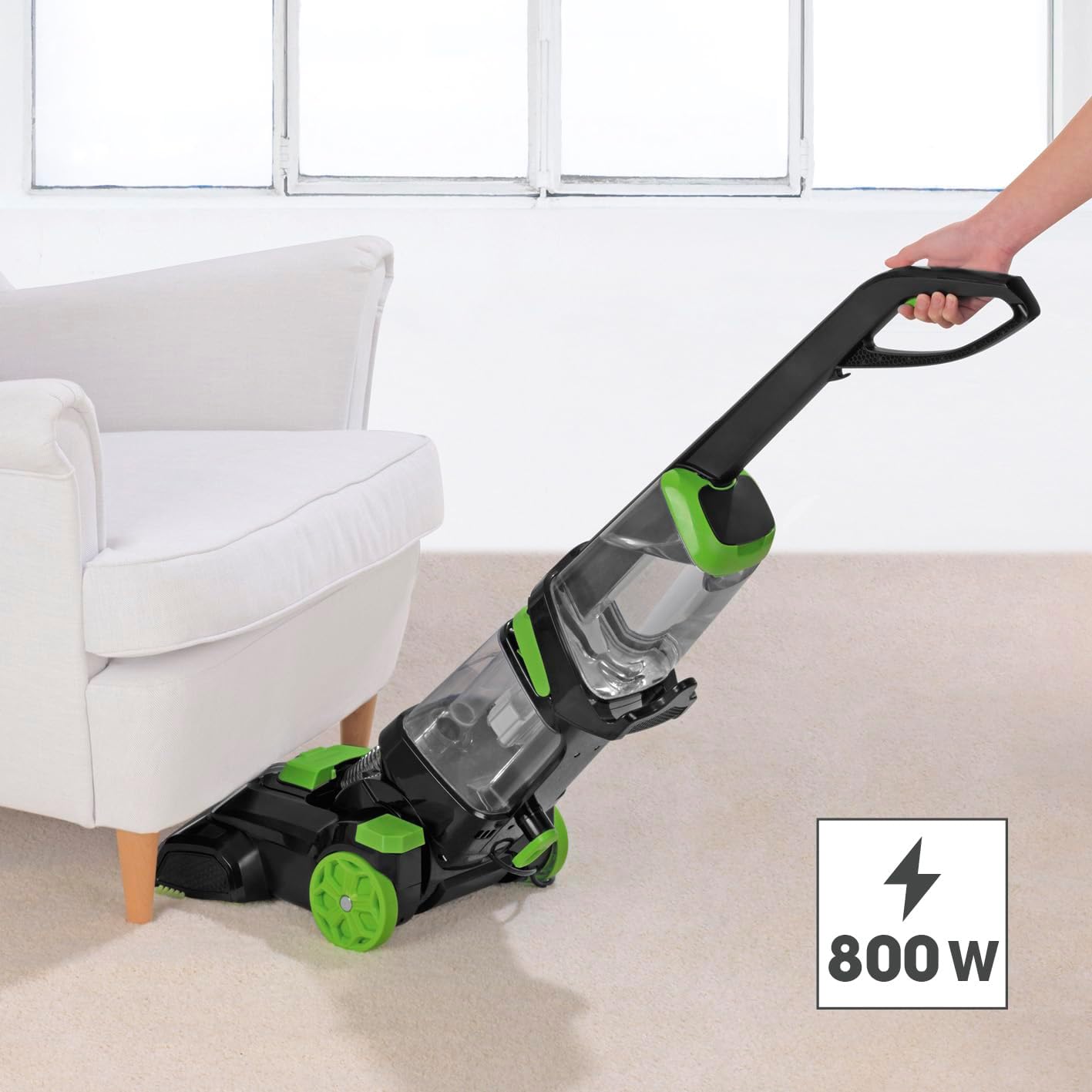 Temps de séchage raccourci en aspirant l’eau sale. Système de nettoyage efficace avec vibrations et brosses latérales,Avec tuyau et brosse pour aspiration.Convient également à presque tous les sols durs.Réservoirs extra larges pour eau sale et fraîche,Nettoyage de tapis aussi simple que passer l’aspirateur!