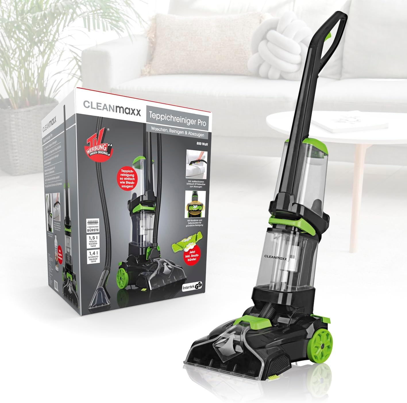Donnez maintenant un nouveau traitement à votre tapis! Avec le nettoyant pour tapis “ROBOCLEAN ” Pro, vous pouvez laver, nettoyer et aspirer vos tapis en une seule étape – aussi simple que l’aspirateur! Le système de nettoyage efficace avec vibration et brosses latérales élimine même la saleté tenace et ramasse de manière fiable la poussière et les particules de saleté. L’eau sale est immédiatement aspirée pour que le tapis sèche rapidement. Vous verrez, sentirez et sentirez la différence avec l’aspirateur normal! Pratique: avec le tuyau et la brosse amovibles, vous pouvez également faire des oreillers, des matelas, des coussins de canapé et bien plus encore. sucer. Bien sûr, vous pouvez également utiliser le nettoyant pour tapis “ROBOCLEAN ” Pro sur presque tous les sols durs – de cette façon, les carreaux dans la salle de bain et la cuisine seront enfin vraiment propres. Découvrez le nettoyant pour tapis “ROBOCLEAN ” Pro – pour un nettoyage haut de gamme dans tout le ménage!