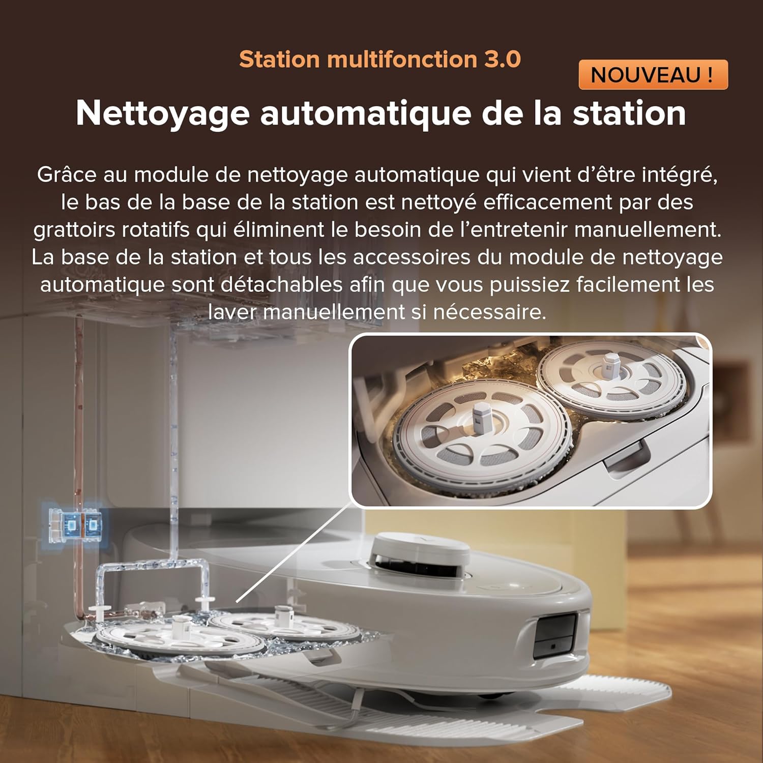 ✅ يرفع الممسحة تلقائيًا 10 مم عند اكتشاف السجاد لمنع التبلل.