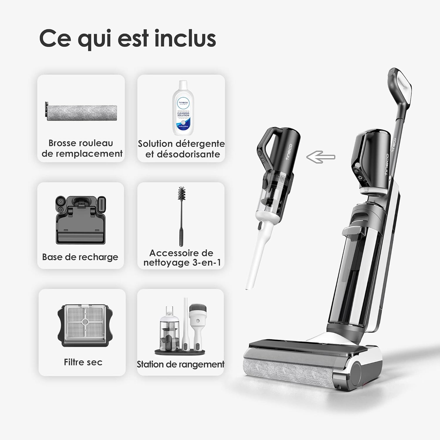 Il aspire autant les débris secs que humides, en passant la serpillère sur votre sol en même temps.