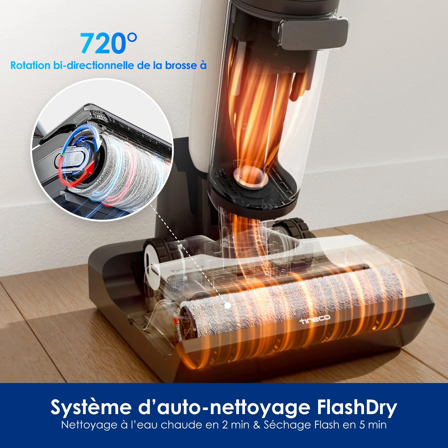 Nettoyage à l’eau chaude en 2 min & Séchage Flash en 5 min